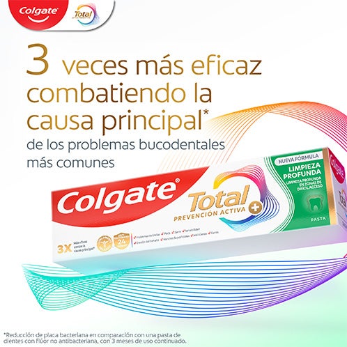 * Disminución superior de bacterias en dientes, lengua, mejillas y encías frente a otros dentífricos con flúor sin acción antibacteriana, con uso regular dos veces al día durante 4 semanas