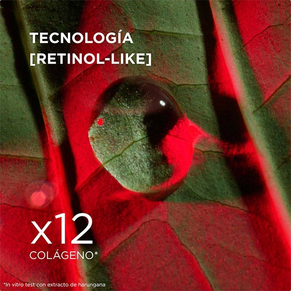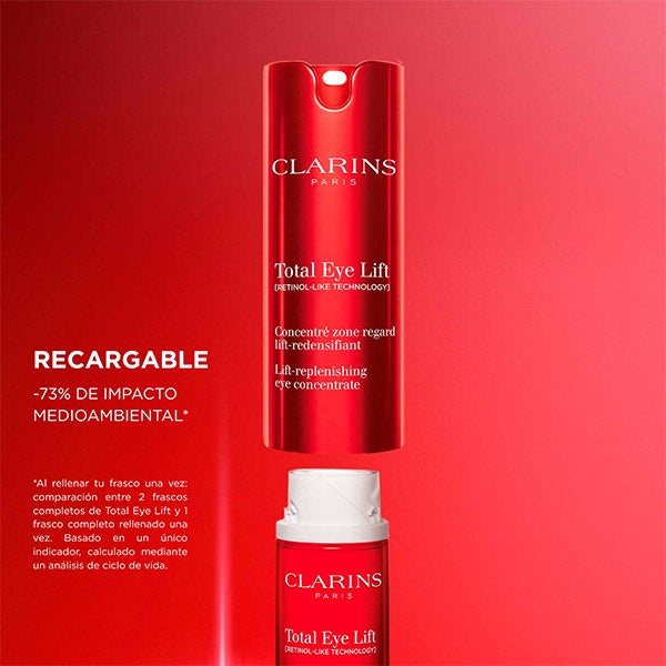 Total Eye Lift es el tratamiento experto que mejora de forma visible la mirada en apenas 30 segundos, gracias a una doble innovación en su ciencia y formulación. Integra la [RETINOL-LIKE TECHNOLOGY] con un concentrado de extracto de harungana bio, tan eficaz como el retinol pero suave con la zona del contorno ocular. Este activo patentado estimula hasta 12 veces la producción natural de colágeno. Además, se enriquece con un novedoso extracto de Jania roja de origen biotecnológico, que aporta un efecto lifting prolongado.
