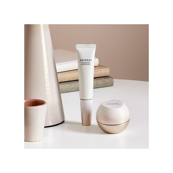 TOTAL EYE TREATMENT es el primer ritual de SENSAI para el contorno de ojos con un doble enfoque que impulsa la renovación y la vitalidad de la mirada. Al fusionar dos fórmulas complementarias, este tratamiento brinda una experiencia sensorial única basada en el contraste térmico: una esencia de efecto refrescante y una crema con sensación de “calor”, que revitalizan visiblemente el área del contorno ocular.