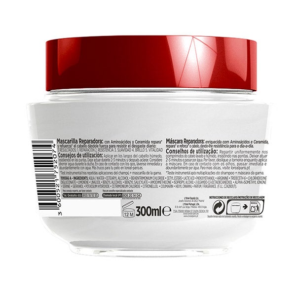 Tratamiento mascarilla intensiva para cabellos muy dañados, enriquecida con un 10% de complejo reparador a base de Keratina XS. Ayuda a restaurar* y fortificar* la fibra capilar, actuando contra los 5 signos del cabello extremadamente dañado:
