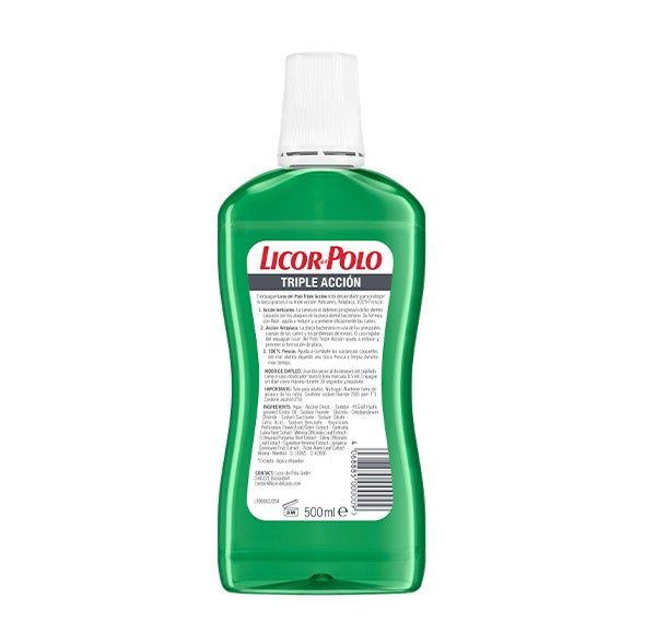El enjuague Triple Acción es el colutorio más emblemático de la marca. Su fórmula trabaja activamente en la cavidad bucal proporcionando tres beneficios en una sola aplicación: protección anticaries, acción antiplaca y una sensación de frescor total. ENJUAGUE: Su complejo con agentes antibacterianos contribuye a disminuir y evitar la acumulación de placa. ANTICARIES: Protege frente a la formación de caries y calma la irritación de las encías. ALIENTO FRESCO: Combate el mal aliento, dejando una sensación de limpieza y frescura prolongada.