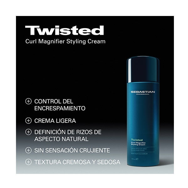Sebastian Professional Twisted Curl Magnifier es una crema de peinado ligera y suave que ayuda a lograr rizos perfectamente definidos, con un acabado natural y libre de encrespamiento. Gracias al Complejo FLEXI ALG™, esta fórmula ofrece definición sin aportar peso, rigidez ni sensación crujiente.