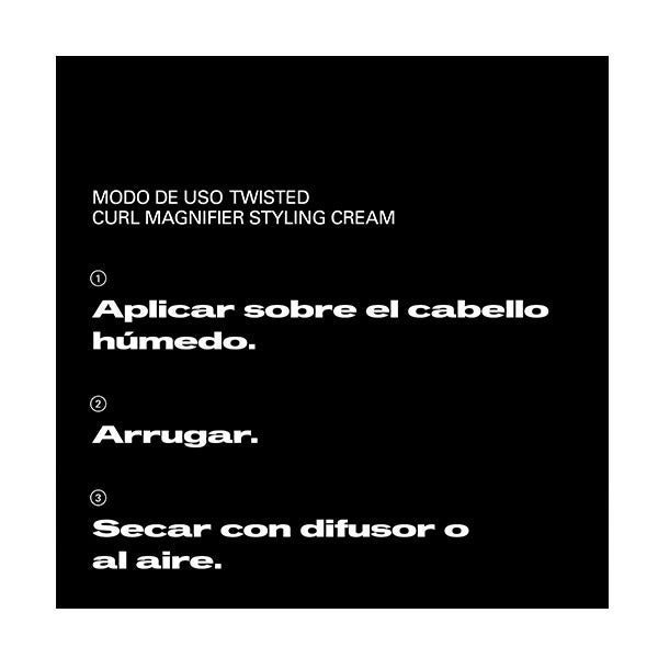 Aplicar de manera uniforme sobre el cabello húmedo y dar la forma deseada. Secar con difusor o permitir el secado natural para obtener un resultado elástico, definido y suave.
