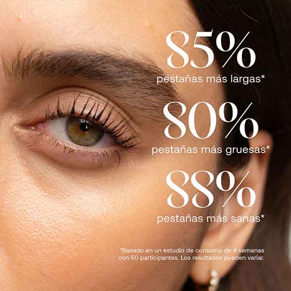 Su fórmula combina vitaminas, extractos botánicos y péptidos que nutren en profundidad y contribuyen al fortalecimiento de cada pestaña desde la base hasta las puntas. Prepárate para notar una mejora visible en aproximadamente 25 días, con pestañas que pueden llegar a ser hasta un 55 % más largas y un 75 % más gruesas. Los resultados pueden variar según la persona, aunque la diferencia es evidente.