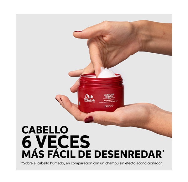 Disfruta de un cabello hasta 6 veces más fácil de desenredar gracias a la mascarilla de penetración profunda Ultima Repair de Wella Professionals.