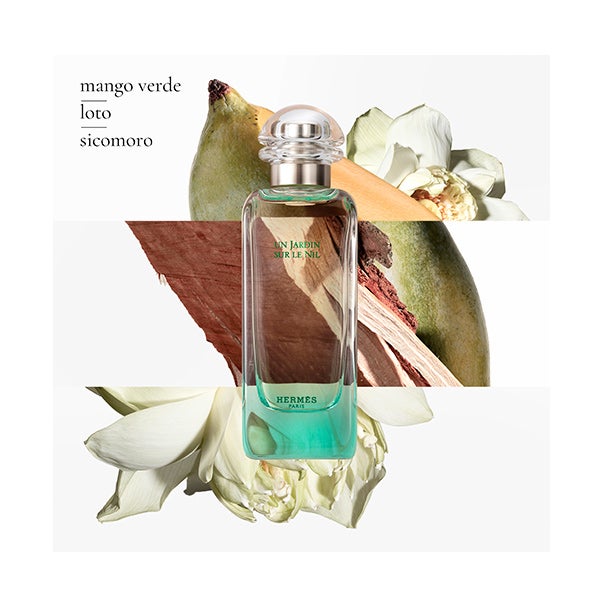 Esta fragancia evoca un vergel lleno de vitalidad, luminoso y exuberante, donde se fusionan los toques del mango verde, la flor de loto y el cálamo aromático con la calidez del incienso y la madera de sicomoro.