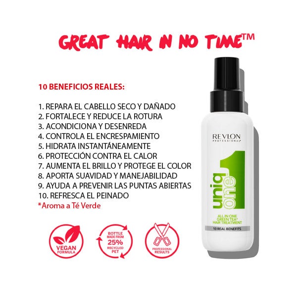 Recupera la salud del cabello seco y dañado, controla el encrespamiento y ofrece protección frente al calor. Mantiene el color radiante gracias a sus filtros UV / UVB, facilitando el peinado y el uso de plancha, para un acabado sedoso y con suavidad. Contribuye a evitar la aparición de puntas abiertas y proporciona mayor cuerpo y textura.