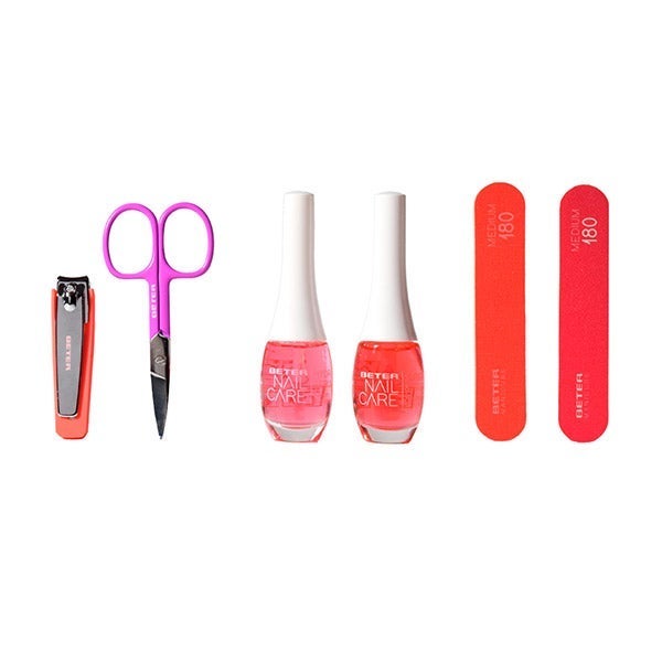 El set de cuidado de uñas más completo: reúne 4 herramientas de manicura, un Fortalecedor & Iluminador de uñas y un Sérum hidratante para uñas y cutículas Nail Care.