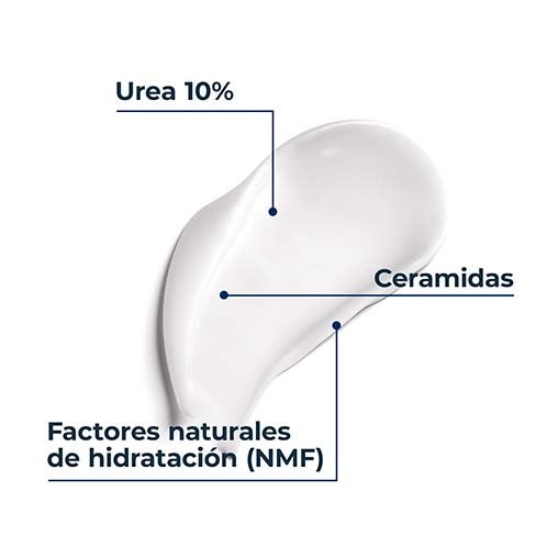 Esta loción hidratante corporal carente de fragancias, colorantes y sensación grasa incluye ceramidas, que reducen la pérdida de agua. La urea y otros NMF contribuyen a retener la hidratación, proporcionando suavidad y confort a la piel seca.