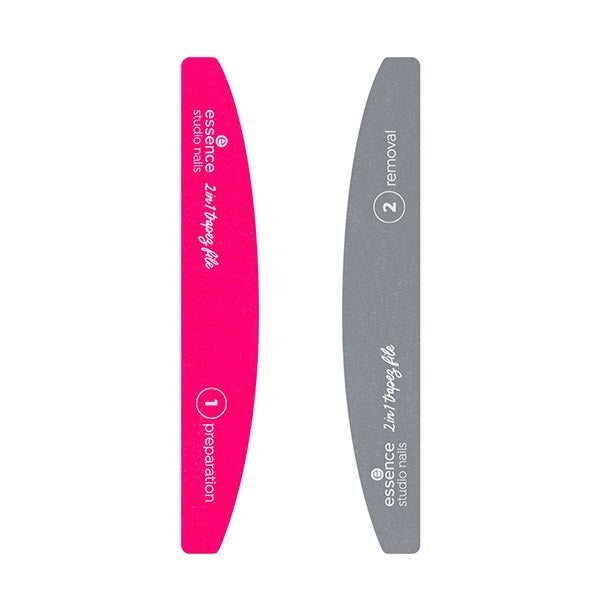 La lima trapezoidal studio nails 2 en 1 con doble cara es perfecta para preparar y pulir delicadamente las uñas antes de una manicura UV, así como para eliminar la primera capa de esmalte o facilitar la retirada del esmalte UV essence mediante el método de remojo.