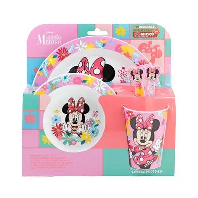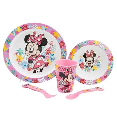 Vajilla micro minnie 5 piezas con plato llano + cuenco + vaso ... diseñado para cubrir las necesidades del día a día.