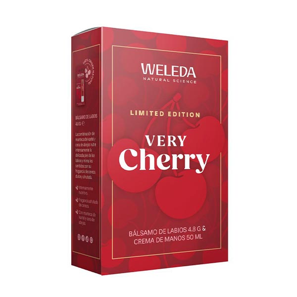 Déjate conquistar por la fragancia afrutada e irresistible del Bálsamo Labial y la Crema de Manos Very Cherry, elaborados con componentes de origen 100% natural.