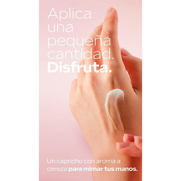 Crema de manos: distribuir sobre las manos y masajear hasta que el producto se absorba por completo. Repetir la aplicación según sea preciso.