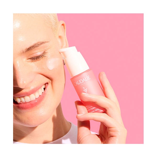 El Sérum Hialurónico VinoHydra retiene intensamente la humedad y la libera progresivamente a lo largo del día.