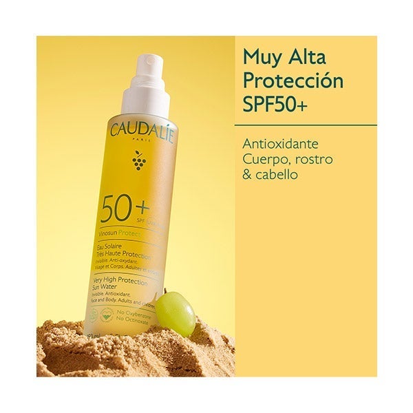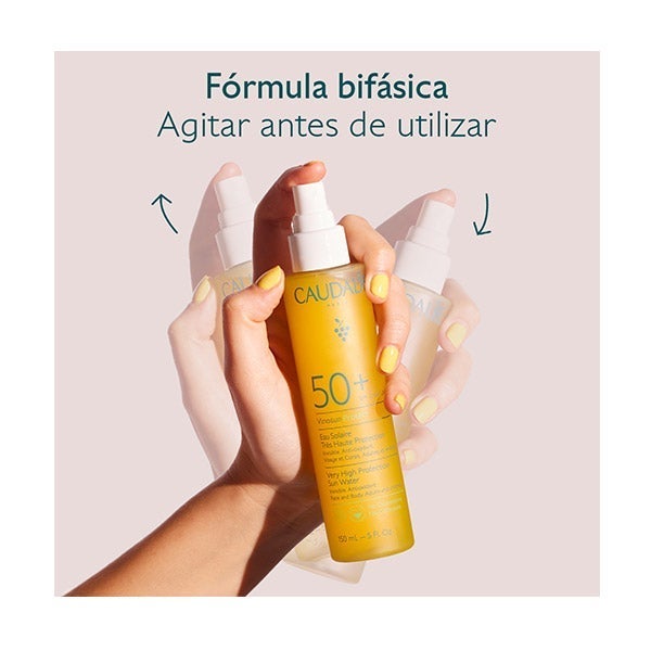 El Agua Solar de Muy Alta Protección SPF50+ ofrece una defensa efectiva para rostro, cuerpo y cabello frente a los rayos UVA y UVB, al tiempo que ayuda a proteger las pieles más delicadas gracias a su acción antioxidante.