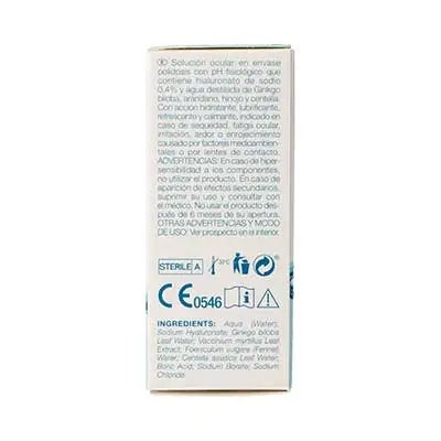 Solución ocular en envase polidosis co pH fisiológico que contiene hialuronato de sodio 0,4% y agua destilada de Ginkgo biloba, arándano, hinojo y centella. Con acción hidratante, lubricante, refrescante y calmante. Indicado en caso: sequedad o irritación del ojo o de la mucosa ocular causada por factores ambientales (aire acondicionado, exposición a la radiación solar, viento, humo, contaminación), sequedad ocular debido a cansancio, trabajo prolongado con pantallas de ordenador, estudio o síndrome del ojo seco o el uso de lentes de contacto muchas horas al día.