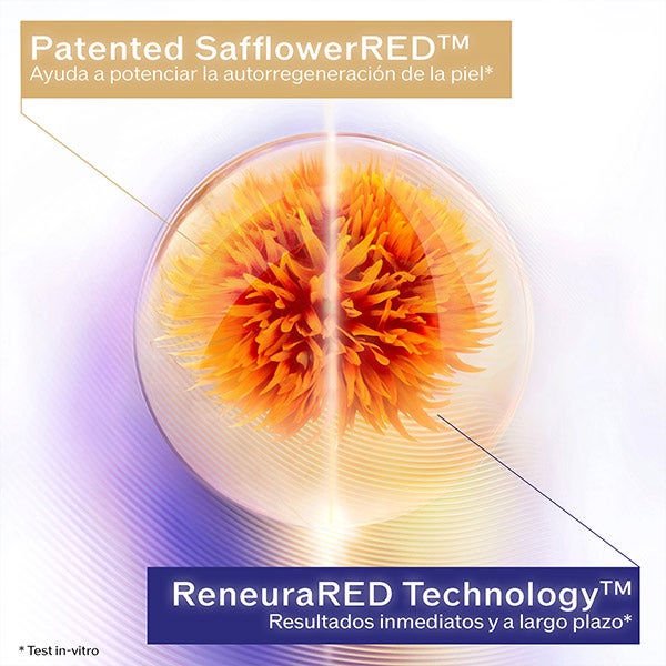 Enriquecida con el extracto patentado SafflowerRED™, obtenido exclusivamente en Japón, ayuda a optimizar la red nutritiva y la capacidad natural de regeneración de la piel*, combatiendo la pérdida de firmeza, las arrugas marcadas y las manchas. Su tecnología ReneuraRED Technology™ potencia una acción más rápida y duradera.