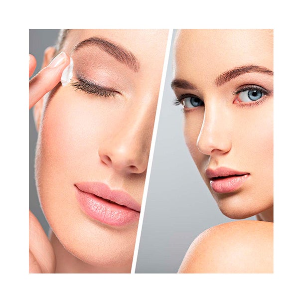 Extiende la crema sobre la piel limpia y seca. Da ligeros toques con las yemas de los dedos alrededor del contorno, evitando el contacto directo con la zona del ojo.