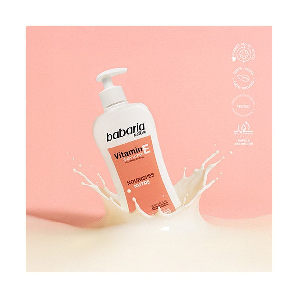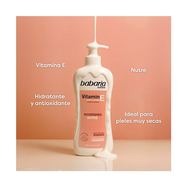 Hidrata y cuida a profundidad tu piel con la loción corporal de vitamina E de Babaria. Creada para pieles muy secas, esta fórmula proporciona una hidratación intensa y una eficaz defensa antioxidante que contribuye a fortalecer la barrera cutánea, dejando una sensación de suavidad y nutrición que perdura.