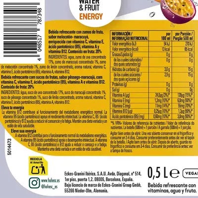 Descubre una nueva forma de cuidar tu energía diaria con HOHES C Vitamin Water Fruit ENERGY 500ML, una bebida funcional diseñada para personas activas que buscan bienestar sin renunciar al sabor. Esta bebida refrescante combina el jugo natural de frutas como melocotón y maracuyá con un completo perfil vitamínico que favorece el rendimiento físico e intelectual.