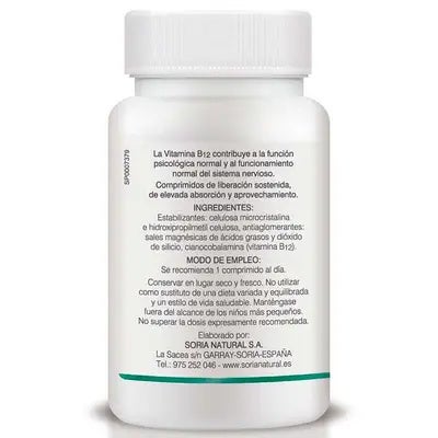 Complemento alimenticio. La Vitamina B12 contribuye a la función psicológica normal y al funcionamiento normal del sistema nervioso. Comprimidos de liberación sostenida, de elevada absorción y aprovechamiento.