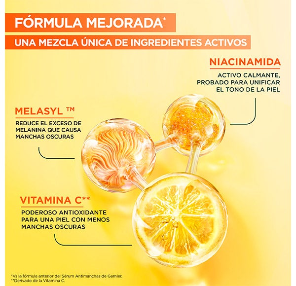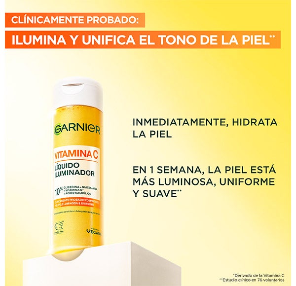 Líquido Iluminador con Vitamina C, Glicerina, Niacinamida y Ácido Salicílico – Garnier