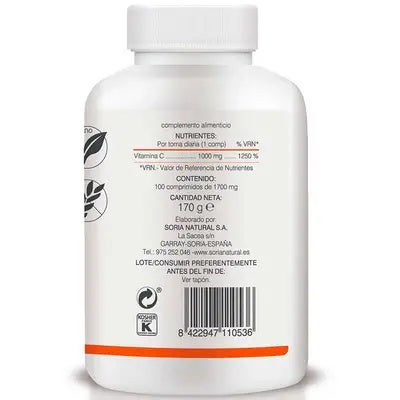 Descubre el poder de la Vitamina C liberación sostenida de Soria Natural, un complemento alimenticio diseñado para optimizar tu bienestar diario. Cada comprimido de 1.700 mg está formulado con una tecnología avanzada de liberación controlada, garantizando una absorción óptima y duradera en tu organismo.
