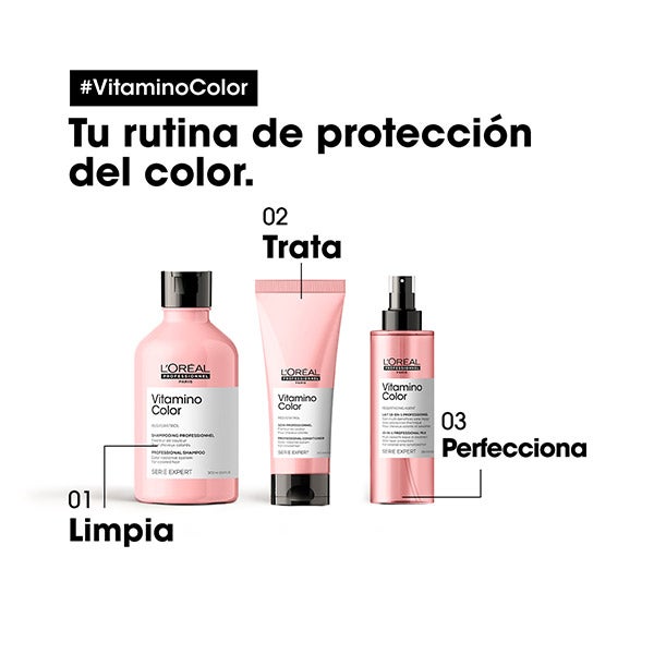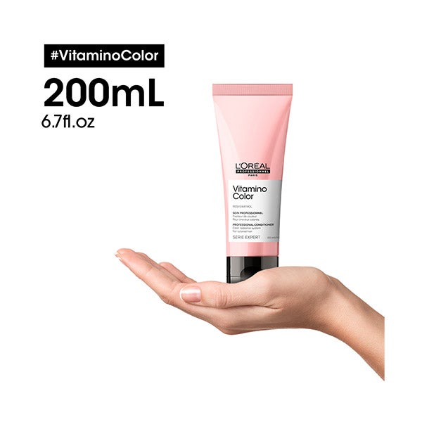 El Acondicionador Vitamino Color está diseñado para cuidar el cabello teñido, facilitando el desenredado y aportando una sensación de mayor suavidad. Se aplica después del champú Vitamino Color, ayudando a preservar los tonos intensos, aportar un brillo duradero y mantener el cabello sedoso. Protege el color hasta 8 semanas*. El resultado es un cabello más fuerte, hidratado, manejable y con una textura suave.