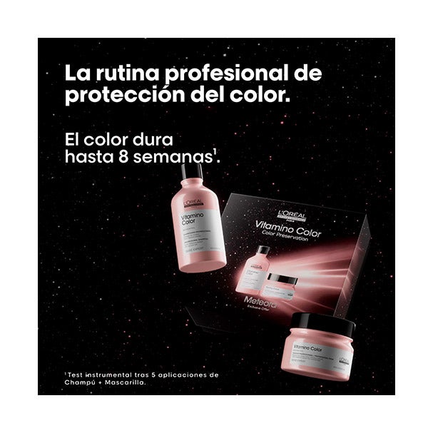 El set profesional Vitamino Color está diseñado para un mantenimiento duradero del color del cabello. Su fórmula, enriquecida con Resveratrol y tecnología antioxidante, contribuye a revitalizar y fortalecer la fibra capilar.