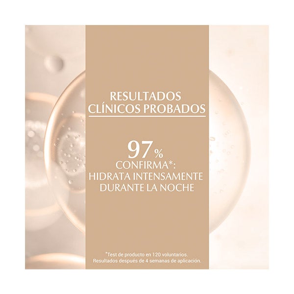 En una prueba de uso con 120 participantes, entre el 97 % y el 100 % manifestó que, después de cuatro semanas, esta crema nocturna aporta una nutrición profunda, refuerza y regenera la piel, al tiempo que atenúa las manchas de la edad, entre otros efectos beneficiosos.