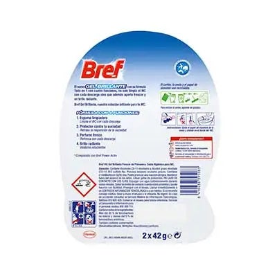 Bref WC Gel Brillante con su fórmula Todo en 1 con cuatro funciones: