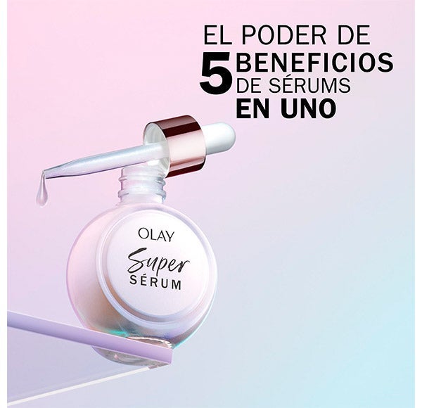 SUPER SÉRUM: Olay lanza su Super Sérum, un tratamiento multifunción que combina 5 efectos de sérum en un solo producto para realzar la belleza de tu piel en cada aplicación: 1. Textura más uniforme 2. Tono equilibrado 3. Mayor firmeza 4. Líneas de expresión visiblemente atenuadas 5. Hidratación prolongada.