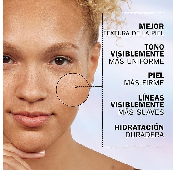 Ofrece defensa de amplio espectro contra los rayos UVA y UVB gracias a su exclusiva tecnología SolaSheer de Olay.