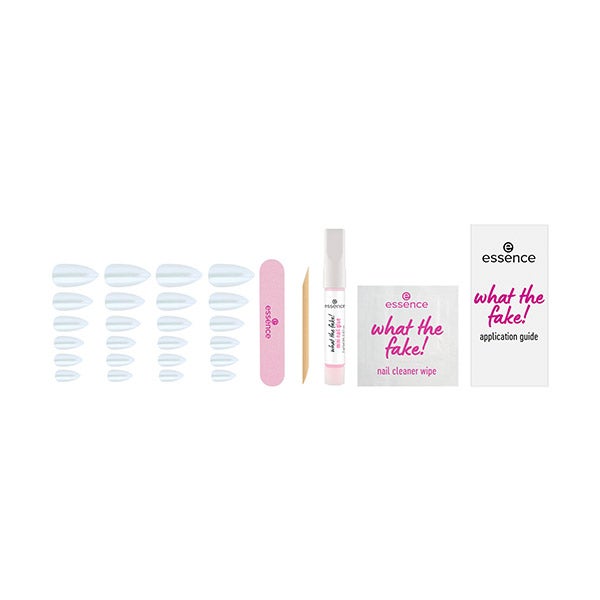 El set incluye además pegamento para uñas, una barra de manicura, una mini lima y una toallita limpiadora, todo lo necesario para obtener un acabado duradero y suave.