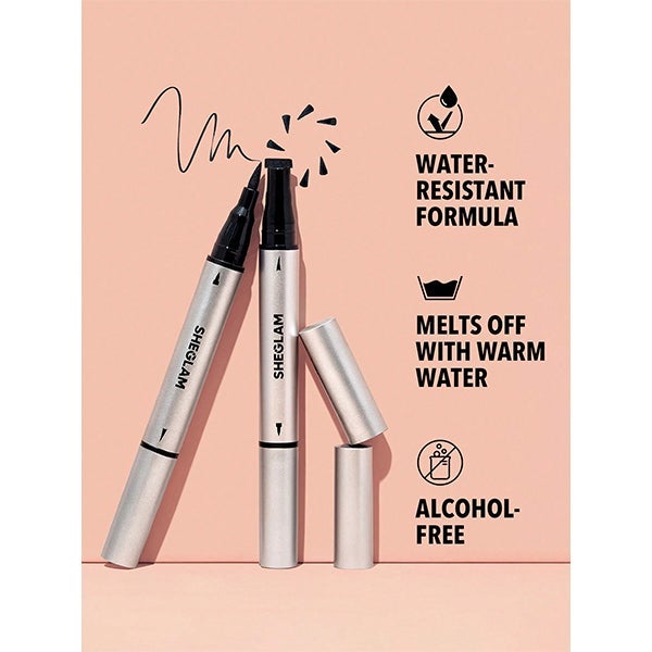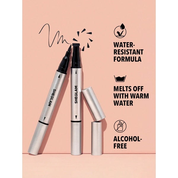 Delineador doble que combina una punta precisa con un sello en forma de ala, ideal para lograr un trazo alado impecable. Su color, intensamente pigmentado y de larga duración, permanece intacto y no se corre. La fórmula, resistente al agua y libre de alcohol, cuida la piel y se retira con facilidad usando agua templada.