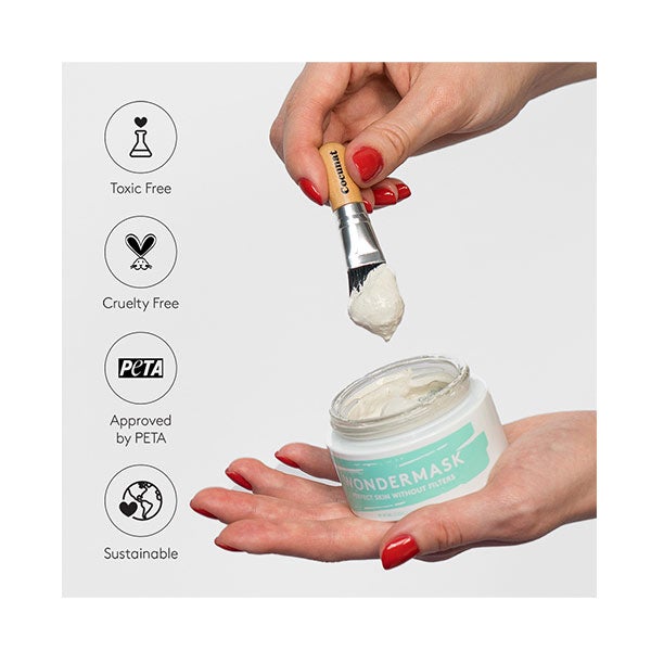WONDERMASK es una mascarilla facial 5 en 1 pensada para lograr una piel visiblemente perfecta. Su fórmula, compuesta en un 98% por ingredientes de origen natural e integrada por extractos de Higo Chumbo, Rosa Canina, Manzanilla, Girasol, Jengibre y la pureza de la arcilla mediterránea, purifica y equilibra la piel en pocos minutos. Ayuda a minimizar la apariencia de los poros, limpiándolos a fondo. Exfolia suavemente y protege frente a los efectos externos, incluida la exposición a la luz azul, dejando la piel luminosa y sedosa al tacto.