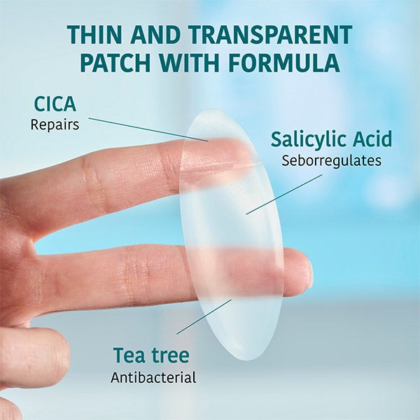 Parche delgado y casi invisible, de formato amplio y compuesto por dos capas: una base hidrocoloide protectora y un núcleo con una fórmula activa diseñada para tratar múltiples imperfecciones al mismo tiempo. Su combinación de Ácido Salicílico y Centella Asiática lo hace ideal para reducir grupos de granos tanto en el rostro —mejillas, mentón y frente— como en el cuerpo, incluyendo la espaldaa. El material hidrocoloide que conforma el parche absorbe el exceso de sebo, genera una barrera frente a la contaminación bacteriana y mantiene un entorno húmedo favorable para la cicatrización de las lesiones y marcas post-acné.