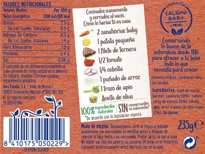 Hero Baby Zanahorias baby con Ternera 235 gr