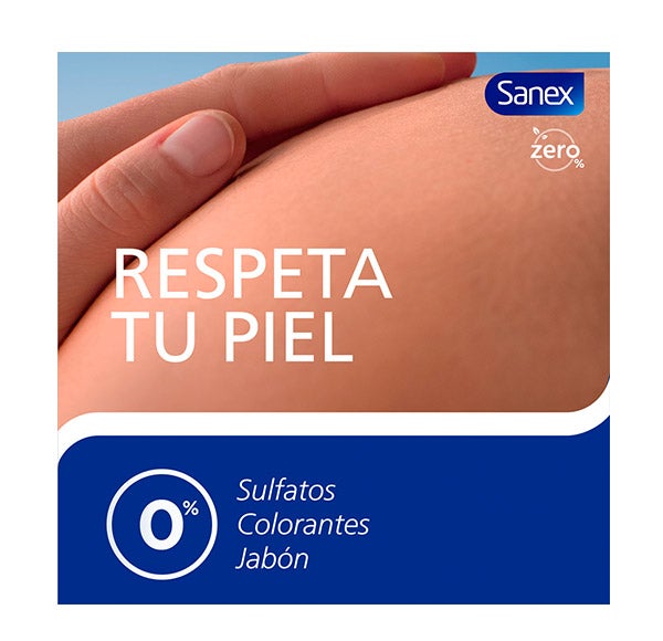 El gel de ducha o baño Sanex Zero% está especialmente indicado para el cuidado de las pieles sensibles.